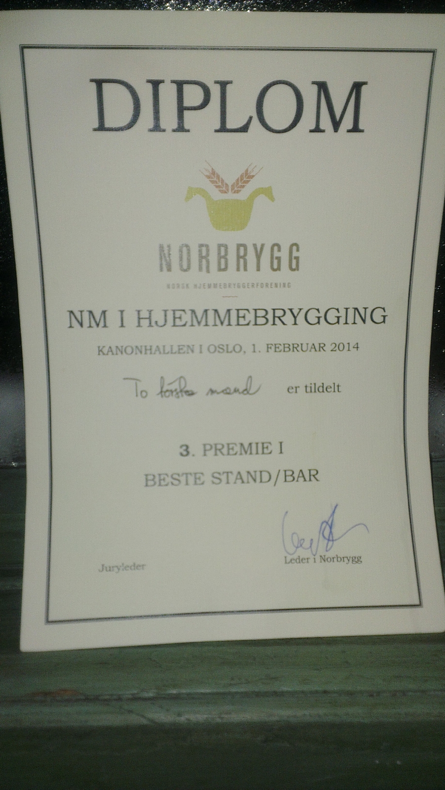 NM 2014 – 3. plass beste bar/stand til To Tørste Mænd, takk til Norbrygg for det 🙂