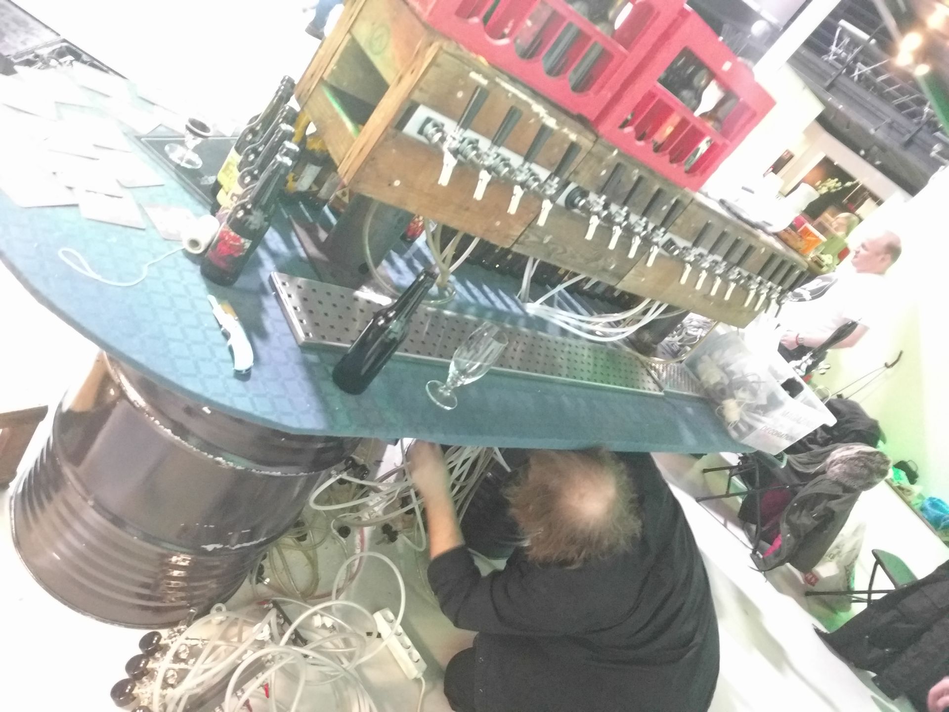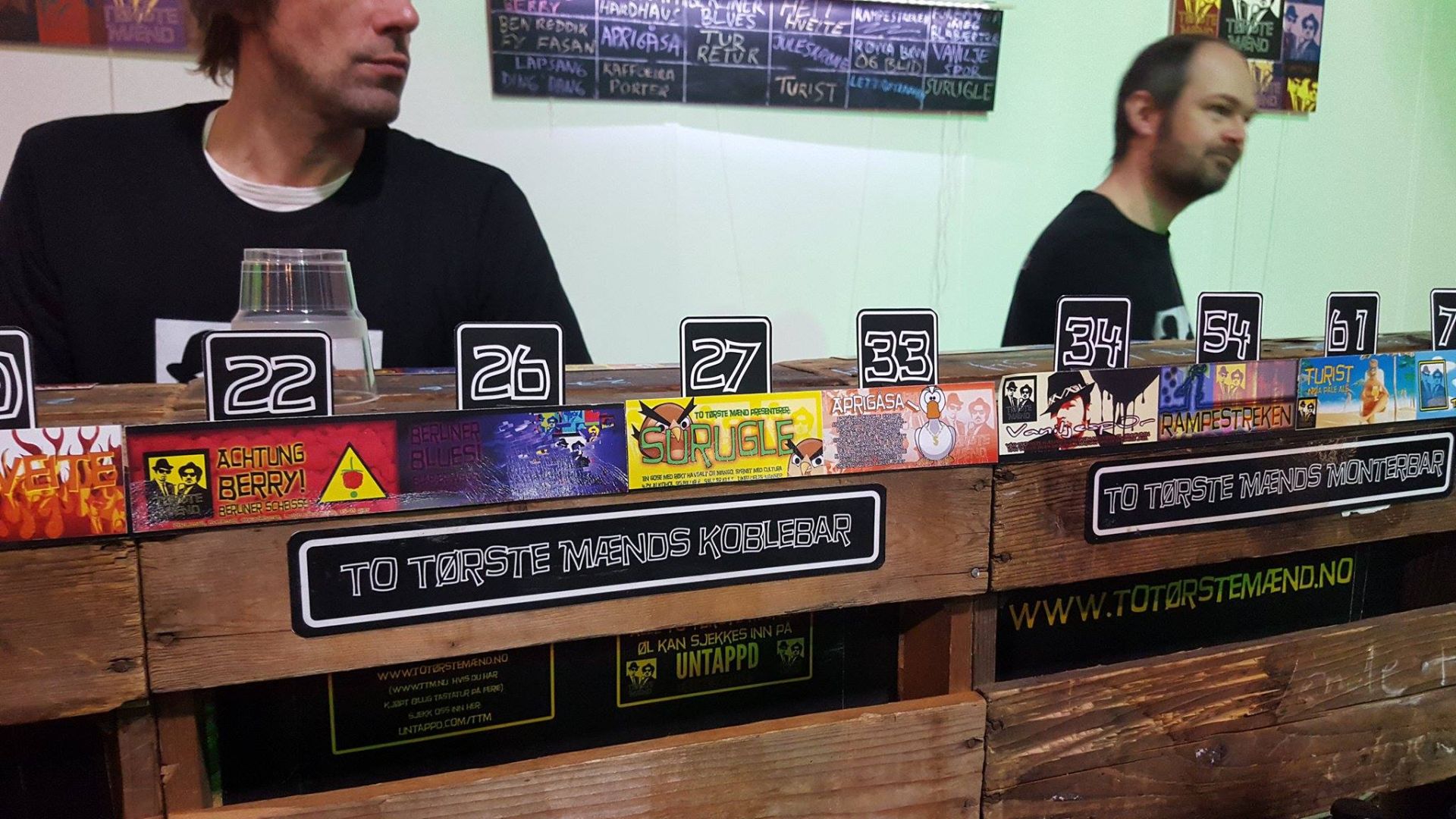 17 sorter medbragt (du kan kikke på menyen vår for kvelden her) betydde at, ja, vi har montert på enda en gammel ølkasse i baren, med fire nye tilhørende Perlickkraner. I tillegg til de 4×4 kranene i hovedbaren har vi også laget en minibar (høhø) med en håndpumpe vi kjøpte fra en britisk pub. I denne kjørte vi en engelsk bitter med vår egen vri.
