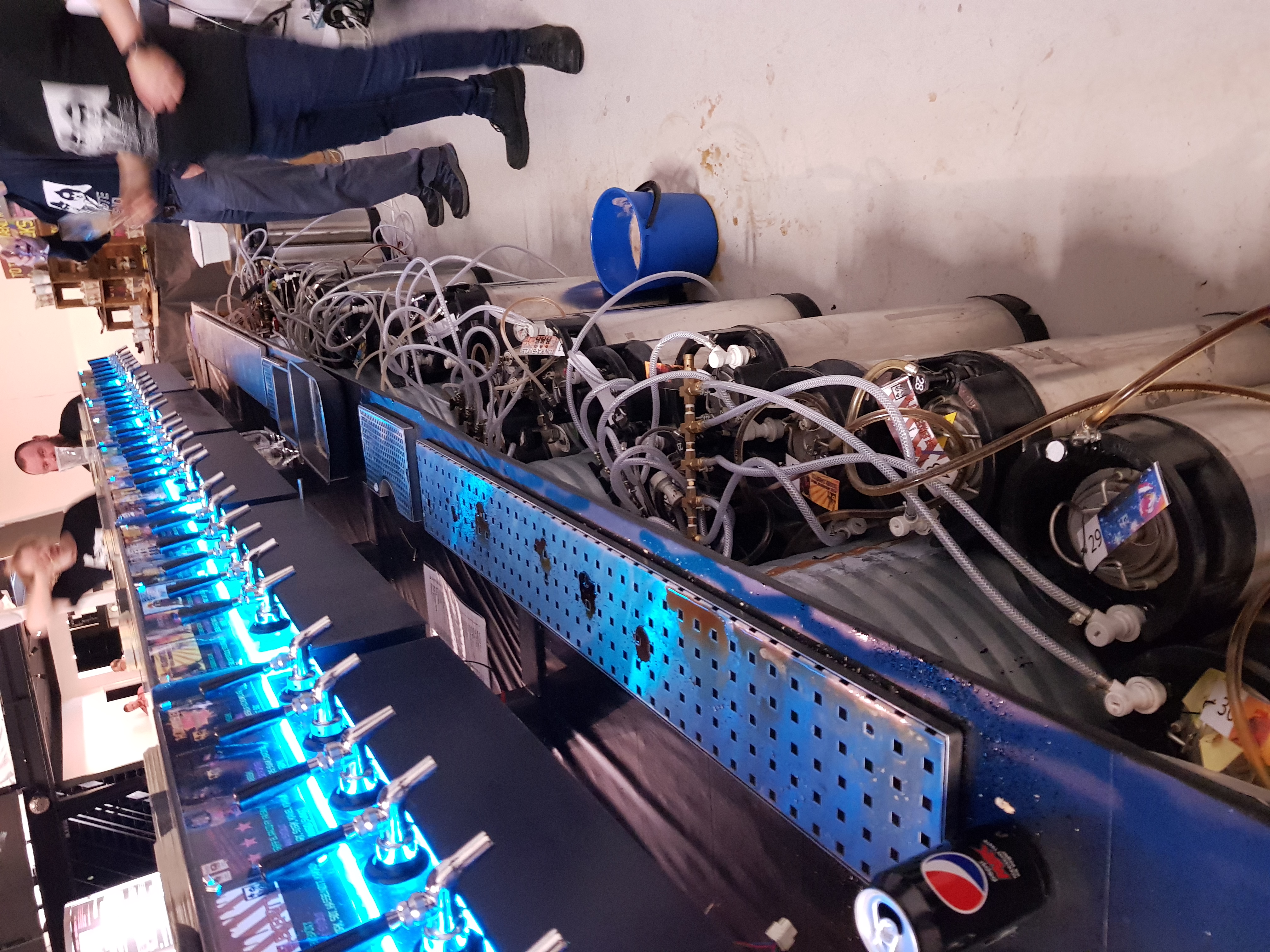 Den nye baren vår er laget i svart stål i fem moduler med seks kraner hver, med lyskasser foran for opplyste plakater.